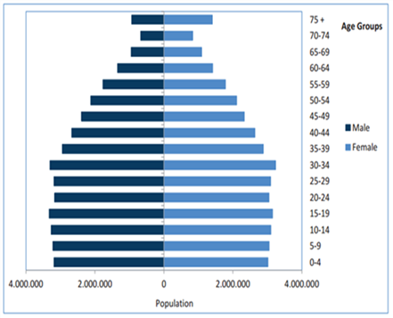 ○ 터키 총 인구는 7770만 명으로 중동지역 내 이란 다음으로 최대 인구를 보유 - 연령별 인구분포에서 0~14세는 전체 인구의 7.6% 차지 - 젊은 층이 전체 인구 중 많은 비율을 차지하나, 최근 출산 인구 저하와 노령 인구 증가로 연령별 구성비가 변화될 것으로 보임.